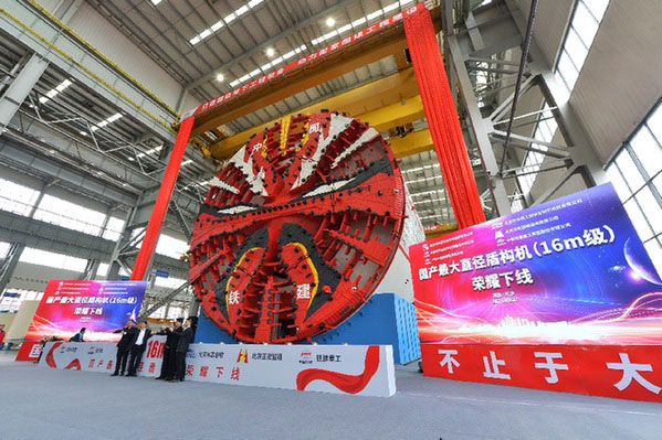 當(dāng)日,一臺(tái)最大開挖直徑達(dá)16.07米的超大直徑盾構(gòu)機(jī)在中國(guó)鐵建重工集團(tuán)長(zhǎng)沙第一產(chǎn)業(yè)園下線。這臺(tái)盾構(gòu)機(jī)整機(jī)長(zhǎng)150米,總重量4300噸,這是我國(guó)迄今研制的最大直徑盾構(gòu)機(jī)。