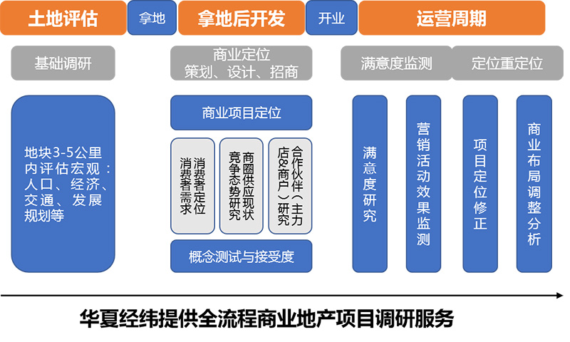 針對項目開發的不同工作階段,華夏經緯提供覆蓋全開發流程的市場研究作為智力支持。