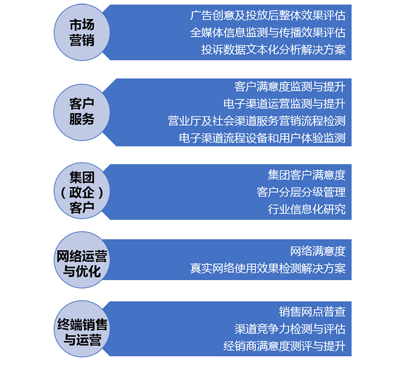 華夏經緯在運營商研究方面擁有專業的研究團隊、豐富的研究經驗及資源,可以為客戶提供市場現狀研究、營銷支撐分析、服務支持調查、市場擴張研究、數據分析和挖掘等覆蓋電信服務生命周期的研究服務,為客戶提供科學、精準的解決方案。華夏經緯為通信運營商和通訊設備廠商提供以下方面的研究咨詢服務: