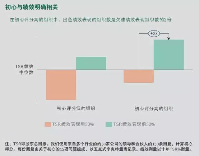 初心的回報。首先,研究表明,初心驅(qū)動的組織績效更好。我們對初心和績效之間的聯(lián)系進(jìn)行了深入的分析,結(jié)果顯示,深深根植于組織的初心與十年股東總回報密切相關(guān)。