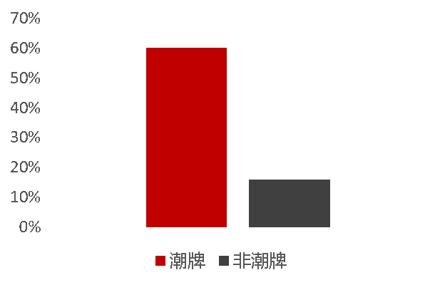 (3)2017年起,潮牌服裝市場規模增長迅速,潮牌消費增速是非潮牌的3.7倍。增長速度達到62%,而非潮牌消費增速是17%。潮牌的消費者數量增幅完勝非潮牌。