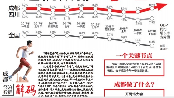 “錯(cuò)綜復(fù)雜”的2019年,經(jīng)濟(jì)運(yùn)行迎來(lái)“半年報(bào)”。這也是各大城市的“半年考”。其中,成都以8.2%的同比增長(zhǎng)率,無(wú)論在“萬(wàn)億俱樂(lè)部”還是已經(jīng)公布數(shù)據(jù)的副省級(jí)城市,均為領(lǐng)跑地位。