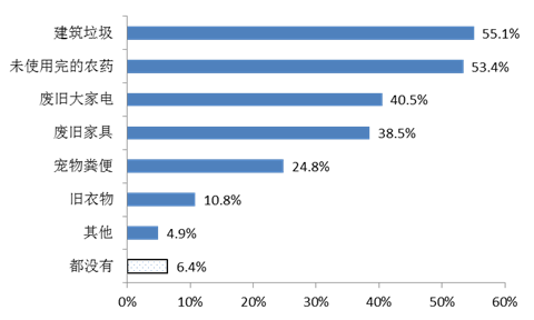 (二)絕大多數(shù)受訪居民都表示有不好處理的垃圾,主要是建筑垃圾、未使用完的農(nóng)藥、廢舊大家電家具等。