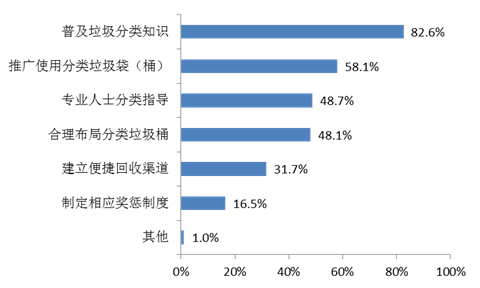 (二)有82.6%的受訪居民認(rèn)為推行生活垃圾分類應(yīng)采取的最主要措施是“普及垃圾分類知識(shí)”。